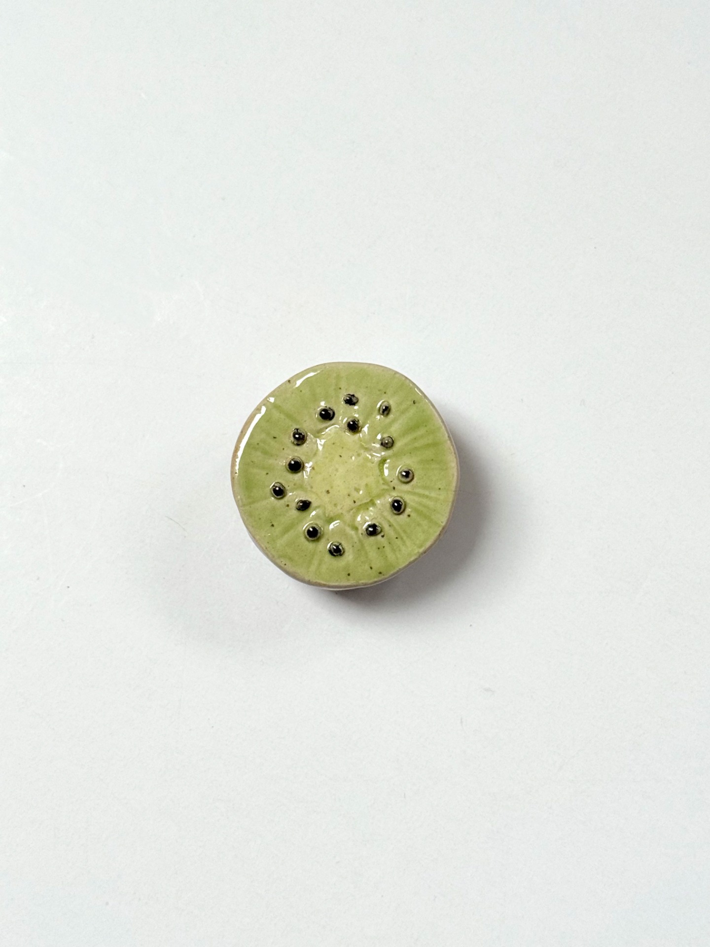 Keraaminen seinäkoriste, relief. Halkaisija n. 5,5 cm.